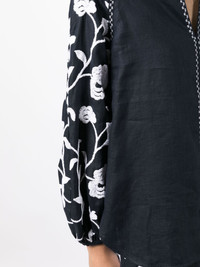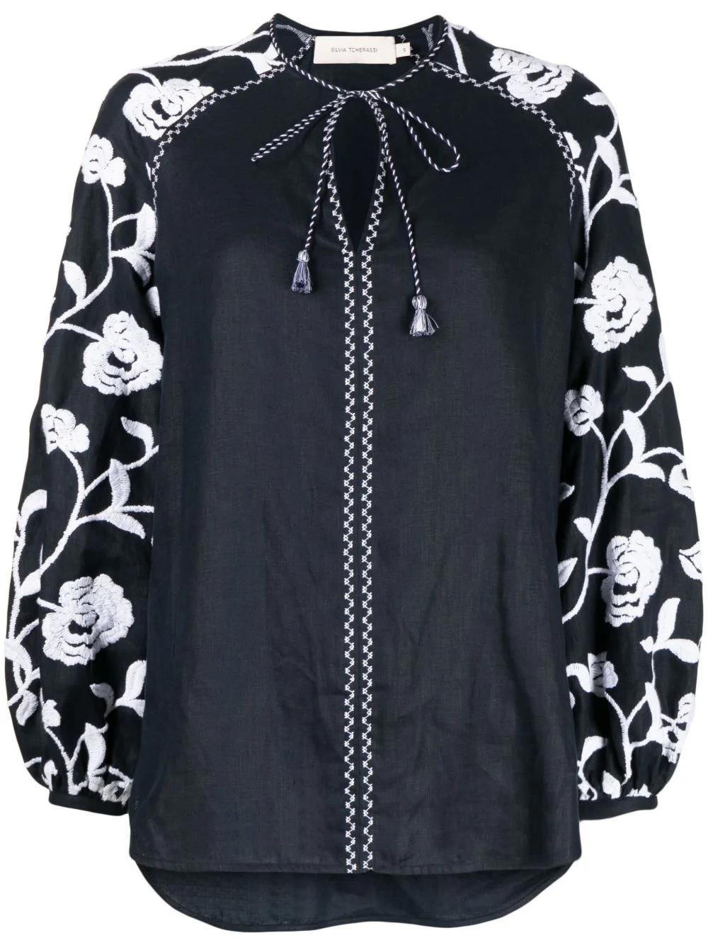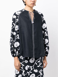 Molveno floral-embroidered tunic top Highlights - Navy blue/white - Linen blend - All-over floral embroidery - Round split neck - Front tie fastening - Long raglan puff sleeves - Elasticated cuffs - Curved hem Imported Composition Body: Linen/Flax 95%, Polyester 5% SIZE & FIT Model measurements Height 5 ft 10 in(1.77 m) Bust/Chest 31.49 in(80 cm) Hips 35.43 in(90 cm) Waist 25.19 in(64 cm) FittingInformation Designed to be unstructured, offering a loose fit throughout Made from a midweight non-stretch fabric This piece fits true to size – take your usual size