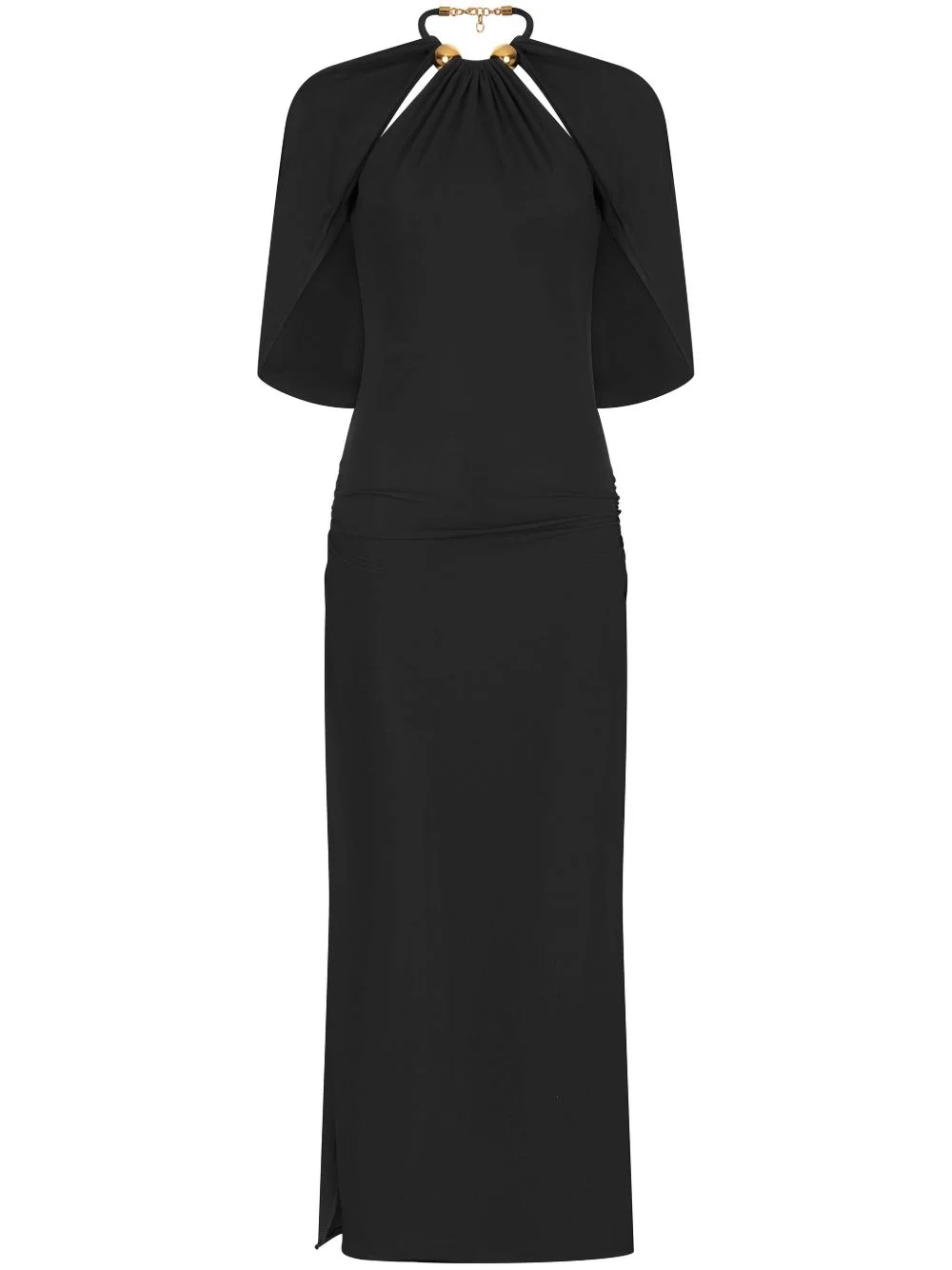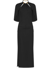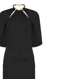 Odele dress Highlights - Black - Halterneck - Chain-link neck strap - Lobster claw fastening - Cape design - Off-shoulder - Gathered neckline - Side slit - Mid-length - Straight hem Imported Composition Acetate 75%, Polyamide 25%