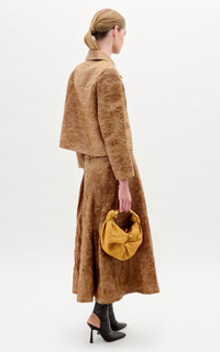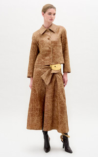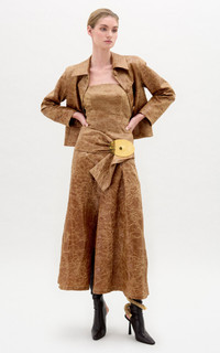 The Colombian designer crafts whimsical and feminine pieces that are imbued with unique stories rooted in her Latin upbringing. Tailored from faux leather with an abstract creased effect, this ‘Olga’ skirt has an A-line shape with a fitted high waist and obi-belt at the hip. Complete the look with the coordinating jacket. PRODUCT DETAILS - Fall/Winter ‘25 - Zip fastening - Composition: 100% acetate; Lining: 97% polyester, 3% elastane - Dry clean - Designer Color: Caramel - Made in Colombia