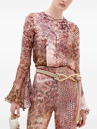 Thea blouse Highlights - Peach orange/multicolour - Silk - Semi-sheer construction - Front tie fastening - Animal print - Round neck - Long sleeves - Flared cuffs - Straight hem Imported Composition Silk 100% Washing instructions Dry Clean Only