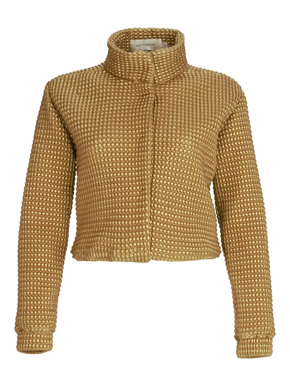 Zalta cropped jacket Highlights - Gold-tone - High neck - Long sleeve - Cropped length Imported Composition Polyester 85%, Cotton 15% Washing instructions Read Manufacturer Guidelines