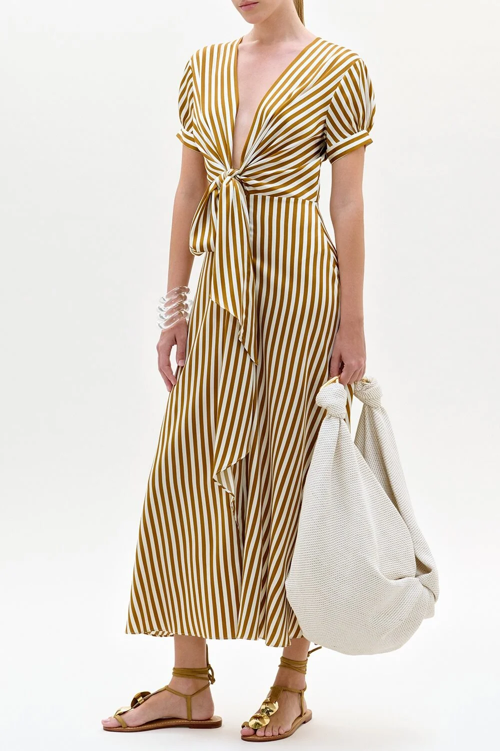DETAILS AND INSIGHT Silvia Tcherassi zila dress in burnt ochre stripes. Pre-Order Ships By April 21 100% Silk Dry Clean Only Made In Colombia Style ST260273-BURNT OCHRE STRIPES
