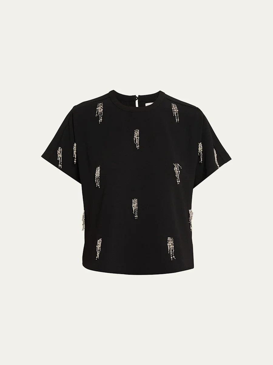 SIMKHAI "Abelia" tee adorned with shimmering bead embellishment Crew neckline Short sleeves Classic fit Hem falls to the hip Back keyhole closure Polyester/spandex Dry clean Imported