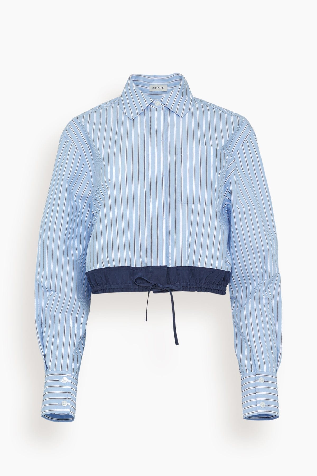 The Simkhai Adryck Long Sleeve Shirt features the unique details you love from this designer. This button down top features a modern, cropped length with a drawstring waistband. Wear you with jeans and flats. FIT DESCRIPTION MODEL MEASUREMENTS - Fits true to size, take your normal size - Button down shirt - Cropped length - Drawstring waistband - Boxy silhouette - 65% cotton/35% polyester - Kortney is wearing a size XS - Bust: 29" - Waist: 22" - Hips: 34“ - Height: 5’10”