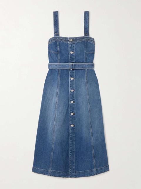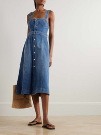 EDITORS'NOTES Jonathan Simkhai's Spring '25 collection is a tribute to his mother, and explores ideas of nostalgia and modernity. Made from stretch-denim, this dress has a darted bodice, paneled A-line skirt and a coordinating belt to define the waist. Wear yours with ballet flats or strappy sandals. SIZE & FIT Model measurements: - Fits true to size, take your normal size - Designed to be fitted at the bust and waist, slightly loose at the hip - Mid-weight, slightly stretchy denim - Model is 180cm/ 5'11" and is wearing a US 2 - Bust: 80cm/ 31.5" - Waist: 65cm/ 25.5" - Hip: 89cm/ 35" DETAILS & CARE - Blue stretch-denim - Button fastenings through front - 98% cotton, 2% elastane - Machine wash