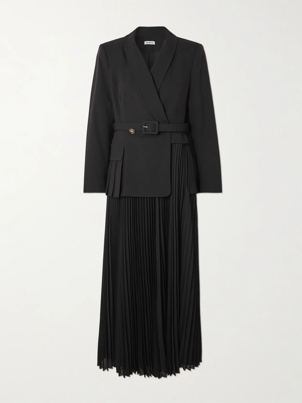 Simkhai's Alexander dress is perfect for workdays that carry into evening. Tailored from crepe, it's designed with a sharp blazer silhouette that falls to a fluid plissed skirt. The belt detail adds a classic finishing touch.
