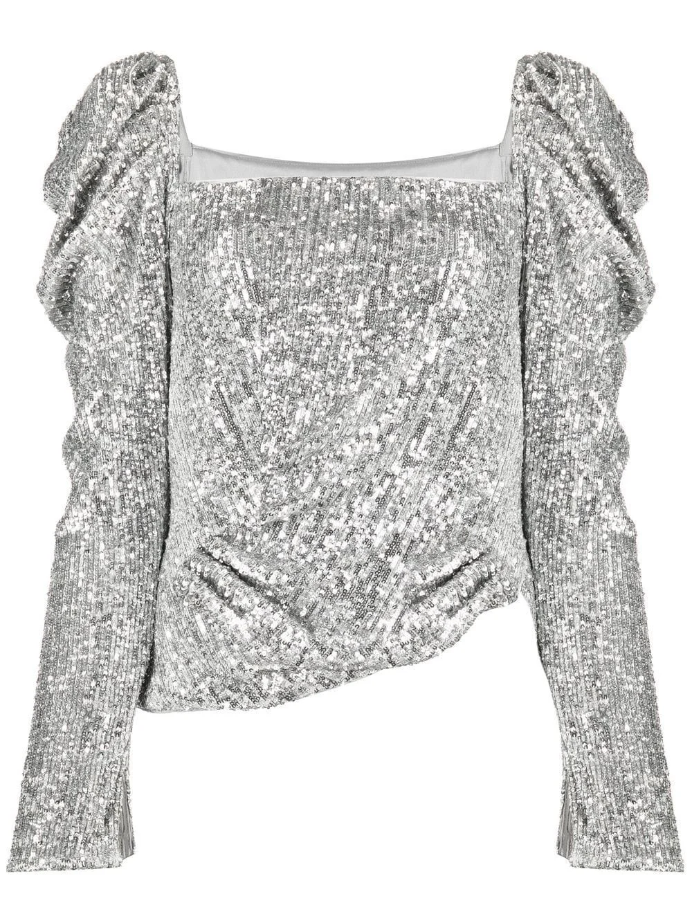 Allura Hammered sequin-embellished blouse silver sequin embellishment square neck long puff sleeves straight hem Imported Composition Polyester 100% SIZE & FIT Model measurements Height 5 ft 10 in(1.78 m) Bust/Chest 33.07 in(84 cm) Hips 33.85 in(86 cm) Waist 25.19 in(64 cm) FittingInformation This piece fits true to size. We recommend you get your regular size Cut for a loose fit Made with a mid-weight non-stretch fabric Washing instructions Hand Wash