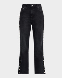 SIMKHAI "Amelia" jeans finished with pearl embellishment in black denim Approx. 33" inseam High rise Fivepocket style Straight legs Ankle length Button/zip fly; belt loops Cotton Machine wash cold or dry clean Made in USA