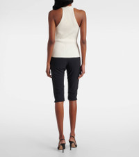 Taking inspiration from sculpture and architecture, Simkhai's impactful designs combine innovative construction with hand-detailing. The Andrea top comes in a ribbed knit style with a halterneck silhouette, a knot-front detail, and a cinched waist. Product Details - Material: 72% rayon, 27% nylon, 1% elastane - Care instructions: dry clean - Made in China - Designer color name: Ivory - Item color: ivory - Collar: mockneck - Hem: ribbed, elasticated - Item number: P01066015 Size & Fit - True to size - Cinched waist - Stretchy fabric - Falls to the hip - The model seen in the picture is 178cm-5'10" and wearing a size XS