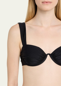 SIMKHAI "Anniston" solid bikini top with ruched cup detailing Sweetheart neckline Structured underwire cups Mid-back clasps Nylon/polyamide/spandex Imported Bottoms sold separately Online Inquiries: BGS21_T6K27| Store Inquiries: #4995062