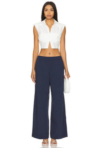 - 63% cotton 37% polyester - Made in China - Dry clean only - Pull-on styling with elastic waistband - Side slant pockets - Lightweight poplin fabric.22" at the knee breaks to 24" at the leg opening - Revolve Style No. JSKI-WP90 - Manufacturer Style No. 424-4953-CAPSOLID