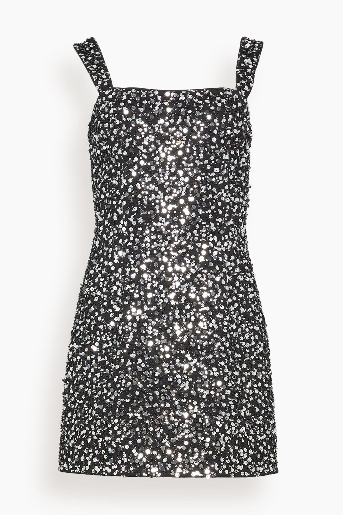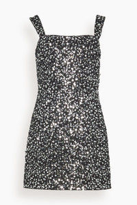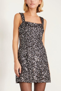 The Simkhai Benson Mini Dress will have you ready for an evening out. This mini dress features allover sequins with a slim silhouette. Wear yours with platforms and a clutch. FIT DESCRIPTION MODEL MEASUREMENTS - Fits true to size, take your normal size - Mini length - Slim silhouette - Allover sequins - Square neckline - Shell: 65% Rayon 30% Nylon 5% Spandex - Lining: 88% Polyester 12% Spandex - Harriet is wearing a size 2 - Bust: 32" - Waist: 24" - Hips: 30.5" - Height: 5’8.5”