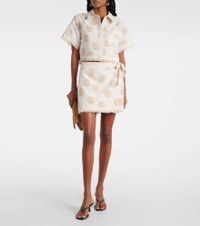 Cut to a charming mini length, the Bethany wrap skirt from Simkhai features a lightweight, straight silhouette. The design is finished with frayed hems, self-tie waist detailing, and an all-over polka-dot print for a playful touch. Product Details - Material: 75% polyester, 25% cotton - Care instructions: dry clean - Made in China - Designer color name: BEIGE WHT - Item color: beige, ivory - Material II: 40% Tencel®, 40% polyester, 20% rayon - Lining: 100% polyester - Closure: zip and hook fastening - Item number: P01056544 Size & Fit - True to size - Non-stretchy fabric - The model seen in the picture is 178cm-5'10" and wearing a size XS