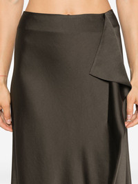 Blane skirt Highlights - Chocolate brown - Satin finish - Concealed rear hook and zip fastening - Draped detailing - Unlined - A-line - Straight hem - Mid-length Imported Composition Outer: Acetate 89%, Polyester 11% Lining: Polyester 100% SIZE & FIT Model measurements Height 5 ft 11 in(1.8 m) Bust/Chest 33.07 in(84 cm) Hips 37.4 in(95 cm) Waist 25.19 in(64 cm) FittingInformation This midi-length skirt is intended to be worn high on the waist The elasticated waist allows for a comfortable fit Made from a midweight non-stretch fabric