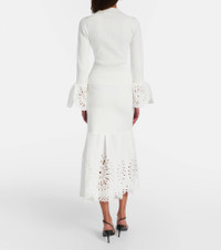 Inspired by sculpture and architecture, Simkhai's designs combine innovative construction with hand-detailing. This elegant midi skirt boasts a mermaid-inspired silhouette with intricate broderie anglaise detailing. Product Details - Material: 71% viscose (recycled), 14% nylon, 14% polyester, 1% elastane - Care instructions: hand wash cold - Made in China - Color: white - Designer color name: White - Item color: white - Material II: 62% cotton, 38% polyamide - Elasticated waistband - Item number: P01125108 Size & Fit - True to size - Partly stretchy fabric - The model seen in the picture is 178cm-5'10" and wearing a size XS