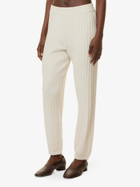 PRODUCT DETAILS - Simkhai cotton-cashmere knitted jogging bottoms - 85% cotton, 15% cashmere - Slips on - Regular fit, mid-rise, straight leg, elasticated waistband, cable-knit pattern - Machine wash cold - True to size - Model is 5ft 10in/1.78m and wears a size small - Lightweight, stretchy Ref: R04395535