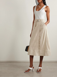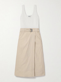 Camden Belted Linen-blend And Stretch-knit Midi Dress
