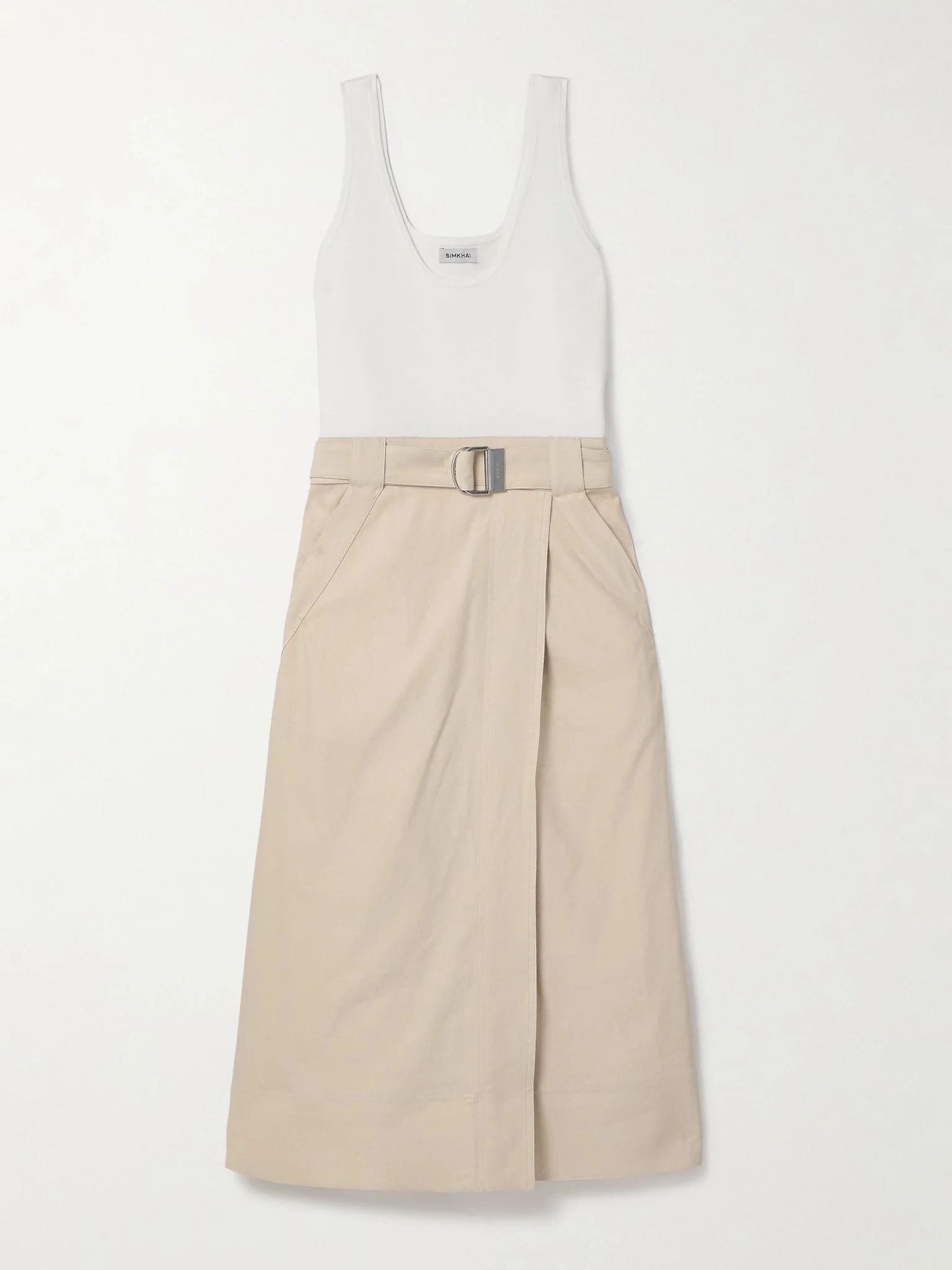 Camden belted linen-blend and stretch-knit midi dress Beige