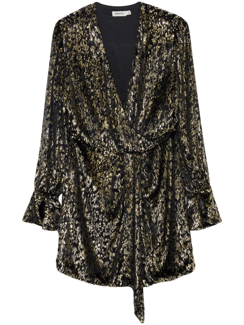 Camryn dress Highlights - Black - Silk blend - Metallic finish - Concealed side zip fastening - V-neck - Long sleeves - Straight hem Imported Composition Lining: Polyester 100% Outer: Rayon 69%, Silk 16%, Metallic Fibre 15% Washing instructions Read Manufacturer Guidelines