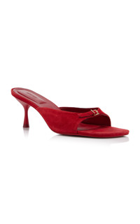 Founded in 2010 by designer Jonathan Simkhai, the studio takes inspiration from architects and sculptors alike, blending progressive construction techniques with intimate hand-detailing to create truly special pieces. Made from buttery suede, the 'Carey' sandals have a square-toe silhouette with a buckled toe strap and a lightly cushioned sole. PRODUCT DETAILS - Heel height measures 65mm/ 2.5" - Slip on - Composition: suede - Designer color: Crimson - Imported