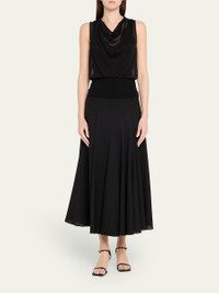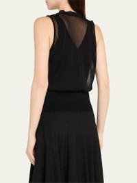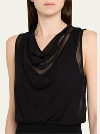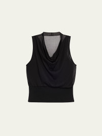SIMKHAI "Carmina" sheer tank top Cowl neckline Sleeveless Draped fit Hem falls to the hip Pullover style Rayon/cellulose acetate/polyester Imported Online Inquiries: BGS21_T6LNS| Store Inquiries: #5007106