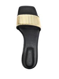 Carter leather slides Highlights - Black/gold-tone - Calf leather - Square open toe - Slip-on style - Branded insole - Flat leather sole Imported Composition Lining: Leather 100% Sole: Calf Leather 100% Outer: Plastic 100% SIZE & FIT Measurement HEEL 0.39 in(1 cm)