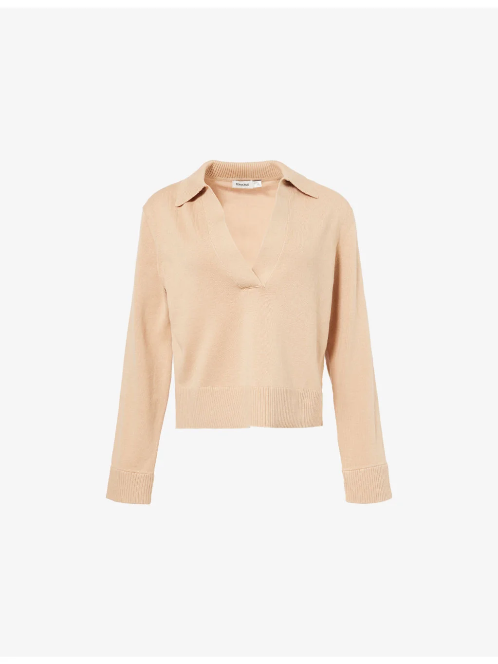PRODUCT DETAILS - Simkhai cotton and cashmere polo shirt - 85% cotton, 15% cashmere - Relaxed fit, V-Neck, polo collar, long sleeves, all-over knitted, ribbed trims - Hand wash cold - True to size - Model is 5ft 10in/1.78m and wears a size small - Midweight, stretchy Ref: R04565521