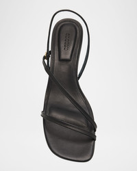 - SIMKHAI "Cedonia" strappy calf leather sandals with golden logo stud accent - 1.75 in / 45 mm kitten heel - Open toe - Two band upper - Slingback support strap - Leather outsole - Lining: Leather - Made in Brazil