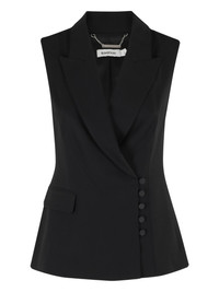 chain-trimmed button-fastening waistcoat Highlights - Black - Chain detail - Notched lapel - Asymmetrical fastening - Four buttons - Flared hem Imported Composition Acetate 71%, Polyester 29%