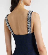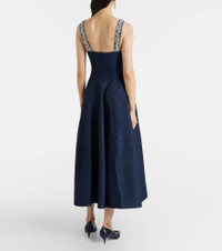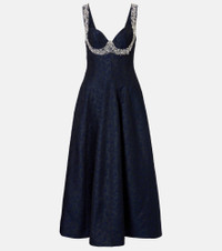 Inspired by sculpture and architecture, Simkhai's designs combine innovative construction with hand-detailing. The Charlotte midi dress showcases a delicate floral jacquard pattern throughout, and stands out with dazzling embellishments along the shoulder straps and bodice. Product Details - Material: 96% polyester, 4% elastane - Care instructions: dry clean - Made in India - Color: blue - Designer color name: Blue - Item color: blue - Lining: 100% polyester - Hardware color: silver - Closure: concealed zipped side - Item number: P01115021 Size & Fit - True to size - Cinched waist - Non-stretchy fabric - The model seen in the picture is 178cm-5'10" and wearing a size US 4