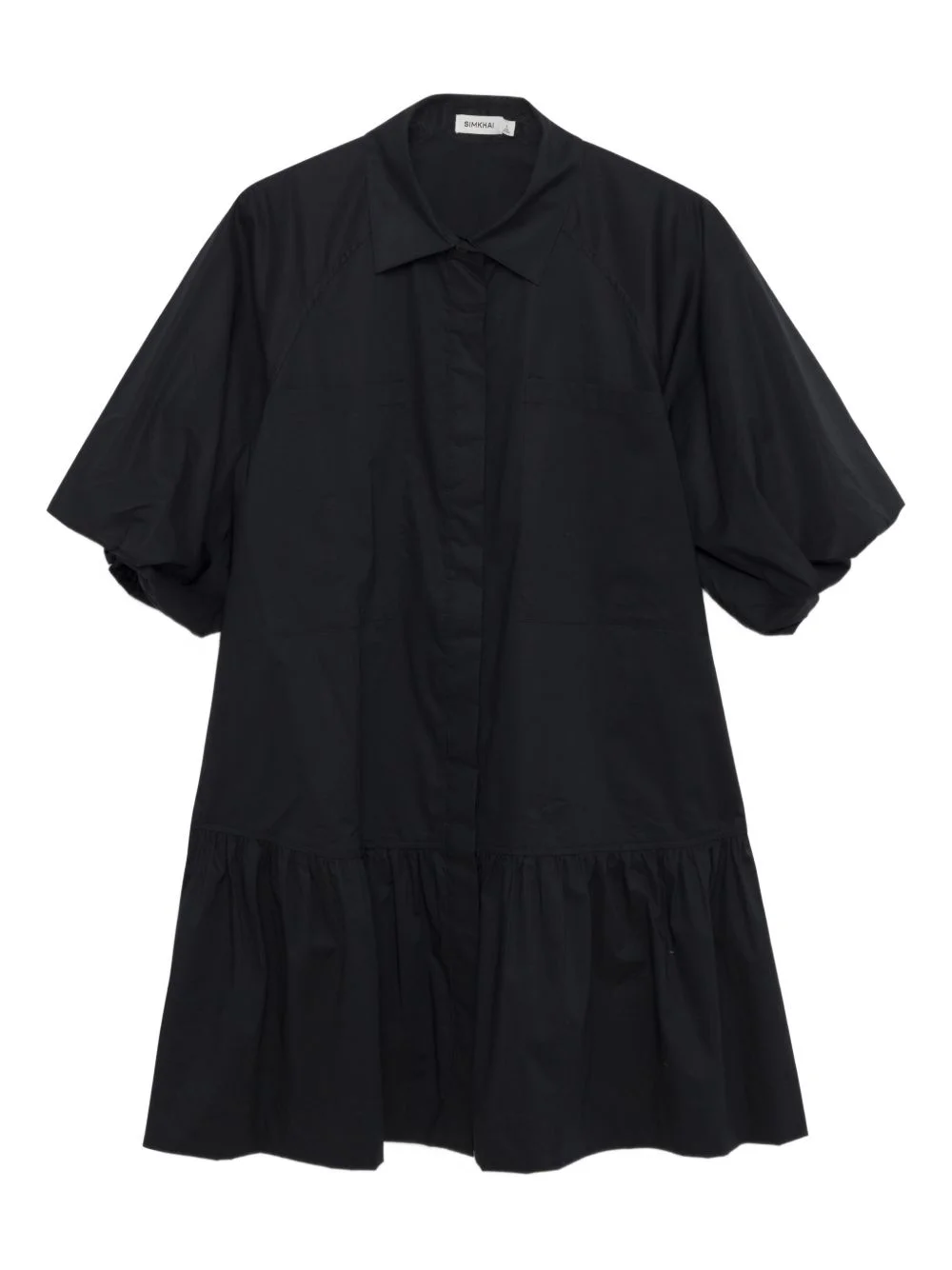 Crissy button-fastening mini dress Highlights - Black - Short sleeves - Shirt collar - Button fastening - Tiered hem Imported Composition Cotton 97%, Spandex/Elastane 3% Washing instructions Dry Clean Only