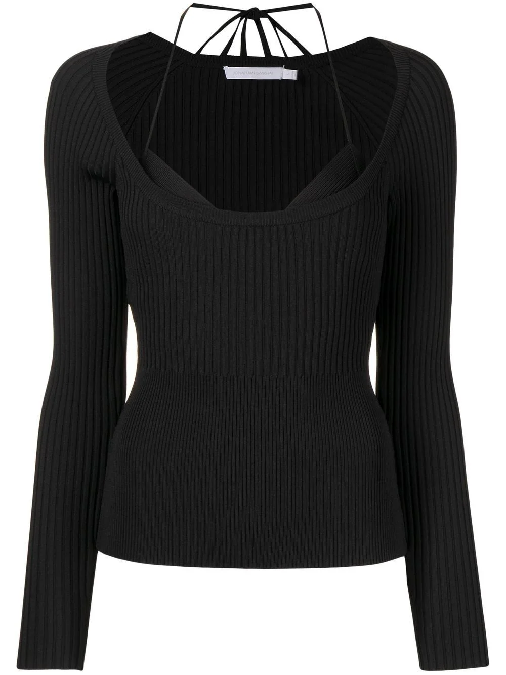 Core Jayline layered top black layered design V-neck halterneck tie fastening long sleeves straight hem Made in United Kingdom Composition Outer: Rayon 72%, Nylon 27% SIZE & FIT Model measurements Height 5 ft 10 in(1.77 m) Bust/Chest 31.49 in(80 cm) Hips 35.43 in(90 cm) Waist 25.19 in(64 cm) FittingInformation This piece fits true to size. We recommend you get your regular size Cut for a slim fit Made with a mid-weight fabric