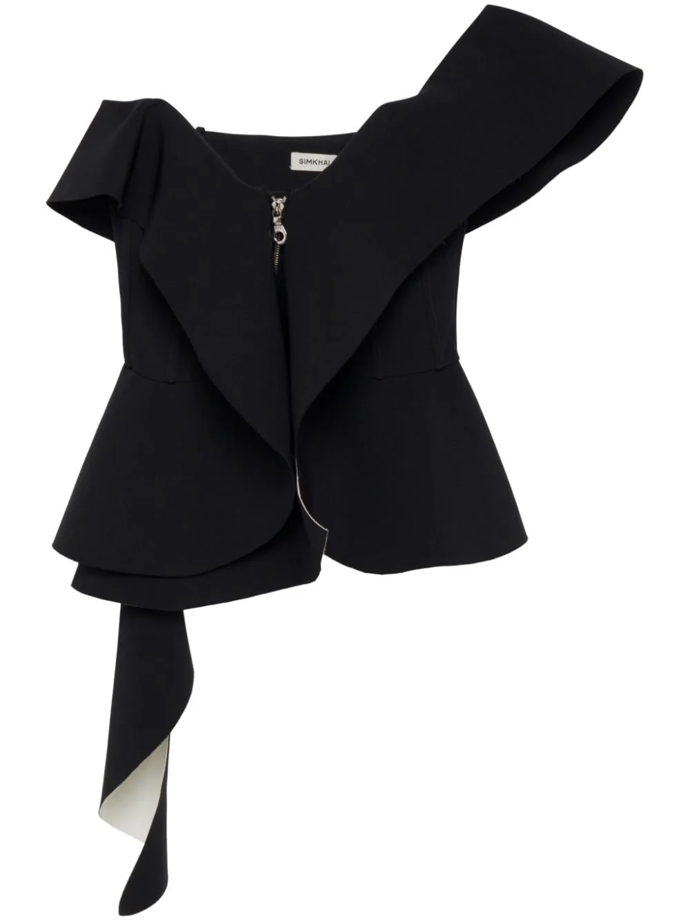 Desiree draped top Highlights - Black - Draped design - Bustier-style neckline - Front zip fastening - Bandeau style Made in United States Composition Polyester 92%, Spandex/Elastane 8% Washing instructions Read Manufacturer Guidelines