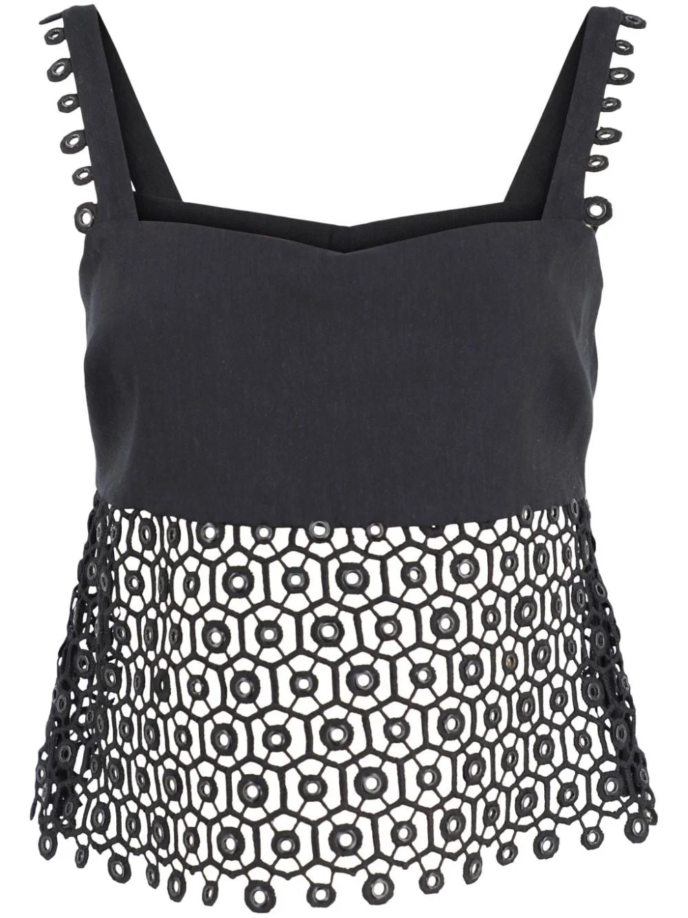 Dorian eyelet-embellished sleeveless top Highlights - Black - Crochet panelling - Eyelet embellishment - Square neck - Sleeveless - Straight hem Imported Composition Polyester 100% Washing instructions Read Manufacturer Guidelines
