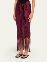 SIMKHAI "Elara" pareo coverup adorned with tonal fringe trim Can be styled in multiple ways Rayon/cellulose acetate Dry clean Imported Online Inquiries: BGS21_T6RUX| Store Inquiries: #5027522