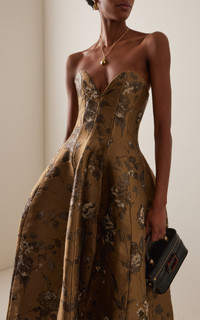 PRODUCT DETAILS - Slim fit, sweetheart neckline, corseted bodice, pleated detailing through the A-line silhouette skirt, with slash pockets on both sides - Zip Closure Through Back - Lined - Composition: Shell: 62% Polyester 14% Acrylic 14% Wool 6% Silk 4% Polyamide, Combo: 70% P - Color: bronze - Dry Clean Only - Fall-Winter '25