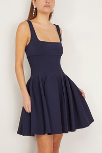 The Simkhai Elektra Knit Mini Dress in Midnight. Designed as elevated daywear, this structured mini combines a classic silhouette with refined design elements. FIT DESCRIPTION MODEL MEASUREMENTS - Fits true to size, take your normal size - 64% Rayon 21% Nylon 14% Polyester 1% Spandex - Dry Clean Only - Emma is wearing a size XS - Bust: 32” - Waist: 25” - Hips: 34” - Height: 5’7”
