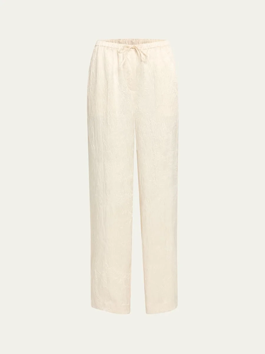 SIMKHAI "Elliat" straight-leg pants in crinkled satin High rise Elastic drawstring waist Four-pocket style Relaxed fit Full length Pull-on style Acetate/polyester Dry clean Imported Online Inquiries: BGS21_T6WCY| Store Inquiries: #5042889