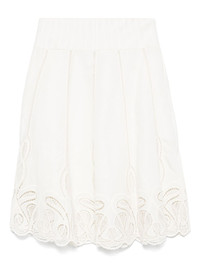 embroidered midi skirt Highlights - White - Concealed side zip fastening - Two side inset pockets - Flared hem Imported Composition Lining: Cotton 100% Outer: Linen/Flax 55%, Viscose 45%