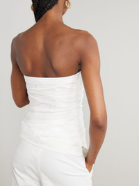 Emerson strapless ruched cotton-blend poplin bustier top White