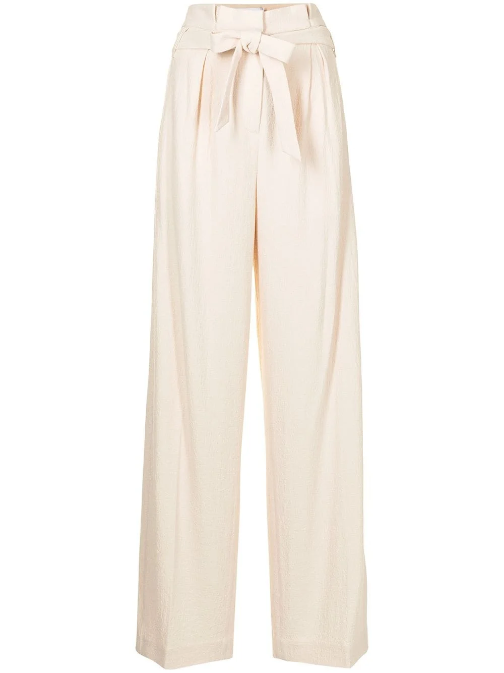 Emiko textured wide-leg trousers cream textured finish high rise tie waist wide leg long hem Imported Composition Viscose 84%, Wool 15%, Spandex/Elastane 1% SIZE & FIT Model measurements Height 5 ft 10 in(1.77 m) Bust/Chest 31.49 in(80 cm) Hips 34.64 in(88 cm) Waist 23.62 in(60 cm) FittingInformation This piece fits true to size. We recommend you get your regular size Designed to be fitted at the waist, loose over the leg Made with a mid-weight stretch fabric Washing instructions Dry Clean Only