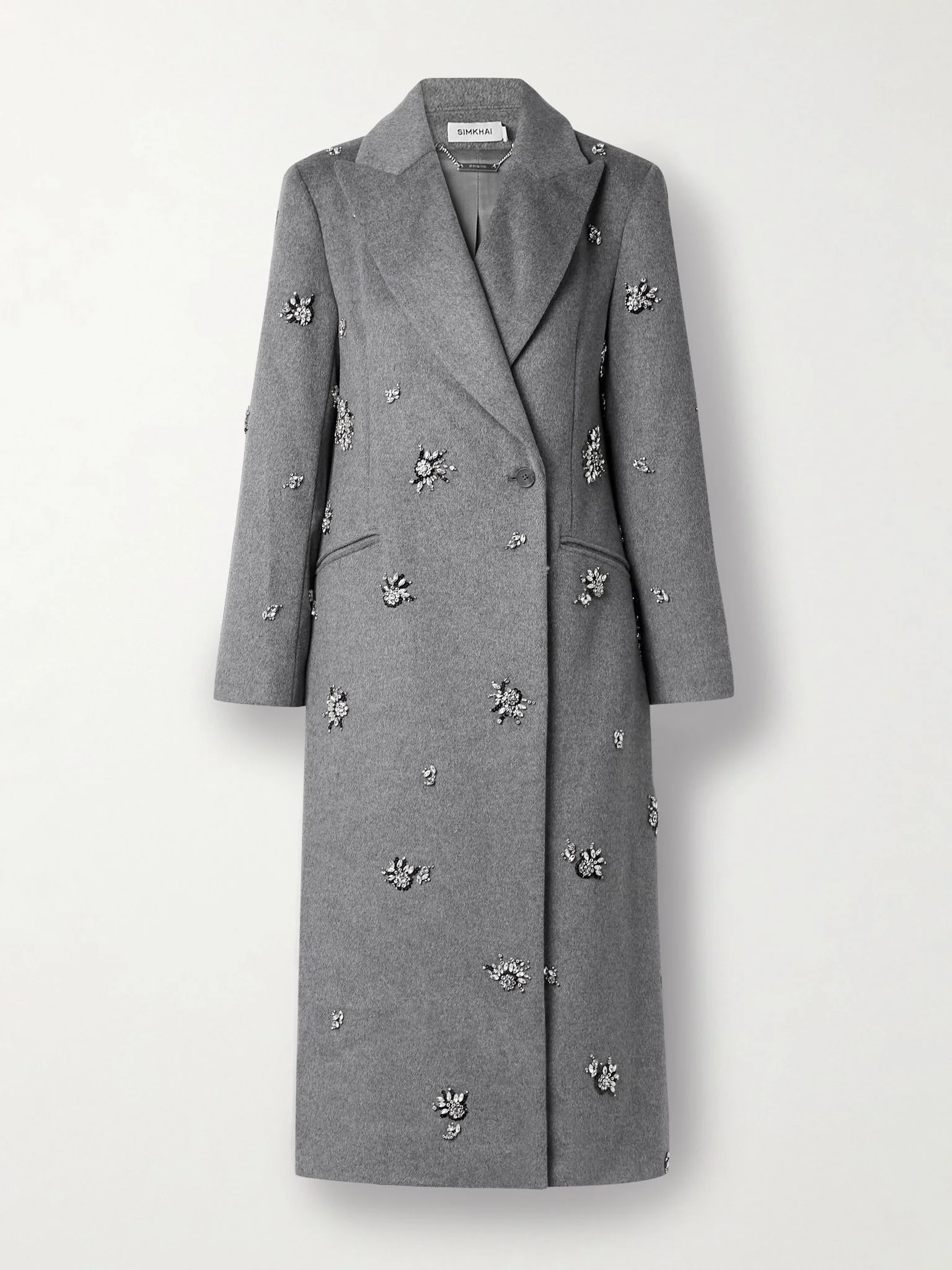 Your outerwear should be just as striking as what you wear beneath it, making SIMKHAI's 'Gianni' coat a worthy investment. Tailored from wool-blend felt, it's embellished with light-catching crystals and sequins arranged to resemble clusters of flowers and has a full lining for smoothness. Size & Fit - Fits true to size, take your normal size - Designed for a slightly loose fit - Mid-weight, non-stretchy fabric - Model is 177cm/ 5'10" and is wearing a size XSmall Details & Care - Gray wool-blend felt - Button fastening at front - 50% wool, 50% polyester - Fully lined - Dry clean