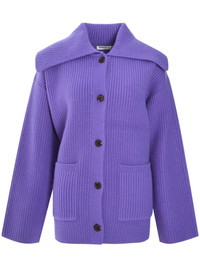 Hollie cardigan Highlights - Amethyst purple - Merino wool blend - Ribbed knit - Front button fastening - Spread collar - Long sleeves - Two side patch pockets Imported Composition Merino 80%, Nylon 20%