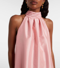 Inspired by sculpture and architecture, Simkhai's designs combine innovative construction with hand-detailing. Made from pink-hued taffeta, the Hope minidress features a self-tie neckline, side slit pockets, and a bow detail. Product Details - Material: 70% polyester, 30% nylon - Care instructions: dry clean - Made in China - Designer color name: Dusty Rose - Item color: pink - Lining: 100% polyester - Collar: mockneck - Self-tie neck - Closure: buttoned back - Pockets: side slit pockets - Item number: P01125152 Size & Fit - True to size - Designed for a loose fit - Non-stretchy fabric - Height of model is 174cm-68.5" and wears a size XS