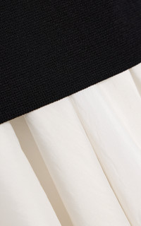 Founded in 2010 by designer Jonathan Simkhai, the studio takes inspiration from architects and sculptors alike, blending progressive construction techniques with intimate hand-detailing to create truly special garments. A dress that brings together the polished structure of taffeta with the refinement of a ribbed knit. The knit upper is tailored to the body, defined by its clean lines and subtle texture. From there, the silhouette expands into a layered mini skirt, its luminous finish unfolding in airy, architectural form. PRODUCT DETAILS - Resort '26 - Zip fastening - Composition: 83% recycled viscose, 17% elastic; Combo: 70% polyester, 30% nylon - Dry clean - Imported