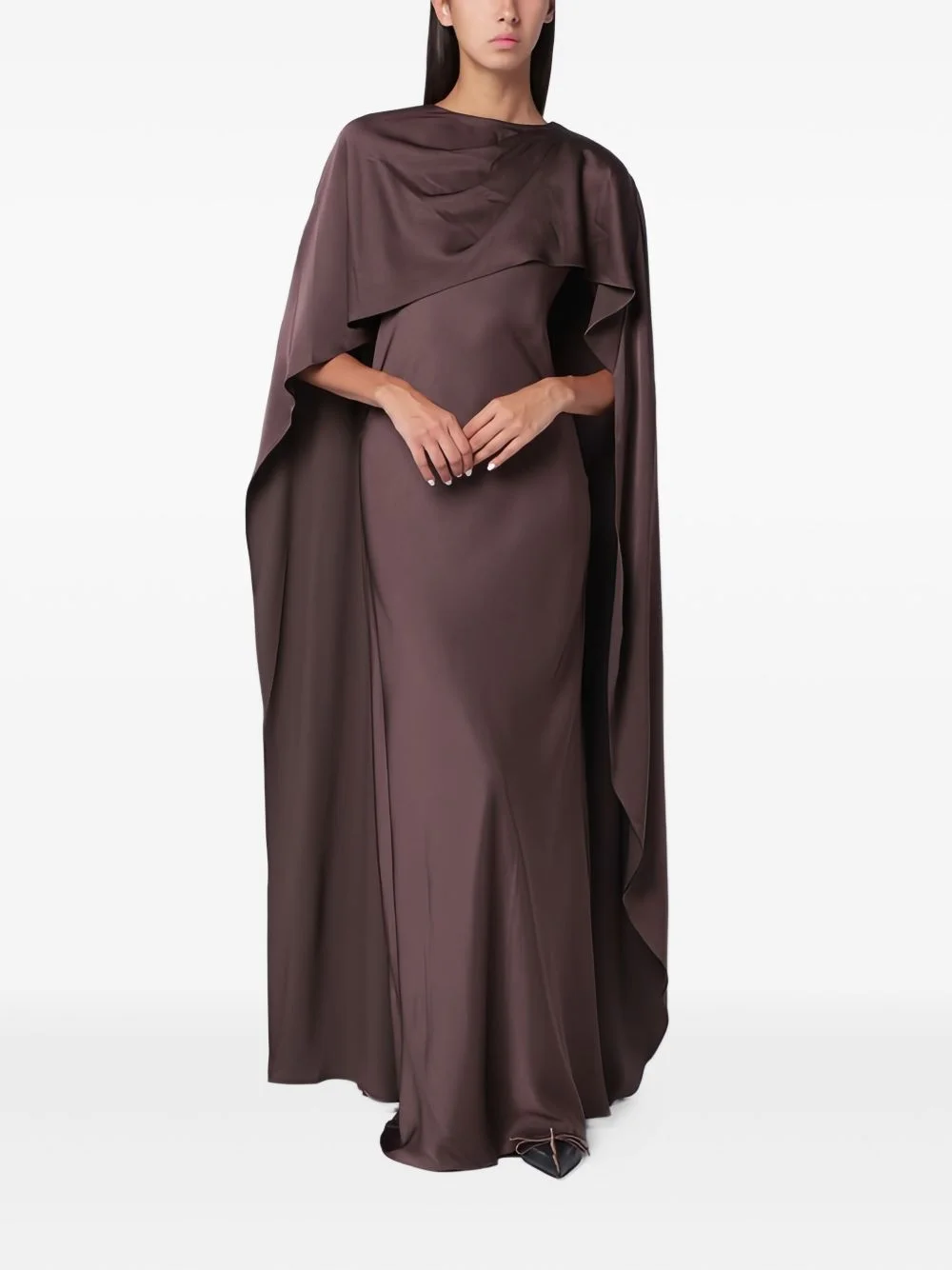 cape-detail maxi dress Highlights - Chocolate brown - Draped detailing - Round neck - Long sleeves - Keyhole back - Floor-length Imported Composition Acetate 84%, Polyester 16% Washing instructions Read Manufacturer Guidelines