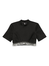 fringe-trimmed short-sleeve top Highlights Imported Composition Outer: Polyester 97%, Lycra 3% Lining: Polyester 100% SIZE & FIT Model measurements Height 5 ft 11 in(1.8 m) Bust/Chest 31.49 in(80 cm) Hips 36.61 in(93 cm) Waist 24.4 in(62 cm)