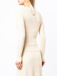 jayline compact scoop-neck jumper almond ribbed knit scoop neck slim cut long sleeves layered design halterneck Imported Composition Rayon 72%, Nylon 27%, Spandex/Elastane 1% SIZE & FIT Model measurements Height 5 ft 10 in(1.77 m) Bust/Chest 31.49 in(80 cm) Hips 34.64 in(88 cm) Waist 23.62 in(60 cm) Measurement SLEEVE LENGTH 22 in(55.9 cm) LENGTH 22.51 in(57.2 cm) WAIST 29.01 in(73.7 cm) BUST 30 in(76.2 cm) FittingInformation This piece fits true to size. We recommend you get your regular size Cut for a slim fit Made with a mid-weight stretch fabric Washing instructions Dry Clean Only