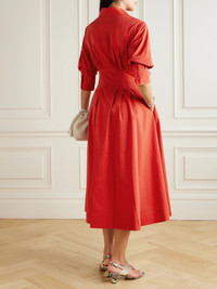 Jazz pleated cotton-blend poplin midi shirt dress Red