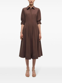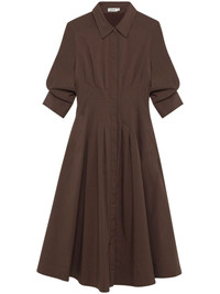 Jazz dress Highlights - Chocolate brown - Cotton blend - Front button fastening - Pleat detailing - Half-length sleeves Imported Composition Cotton 63%, Polyester 37% SIZE & FIT Measurement SLEEVE LENGTH 14.56 in(37 cm) HIPS 43.3 in(110 cm) LENGTH 48.81 in(124 cm) WAIST 25.98 in(66 cm)